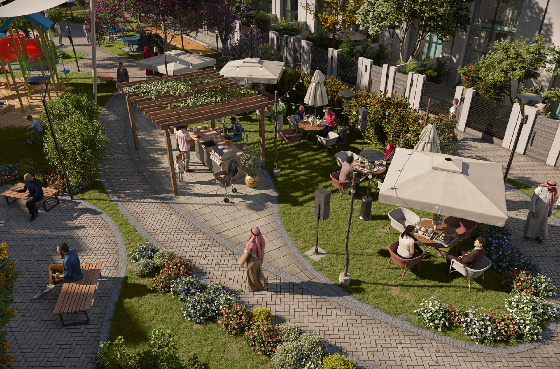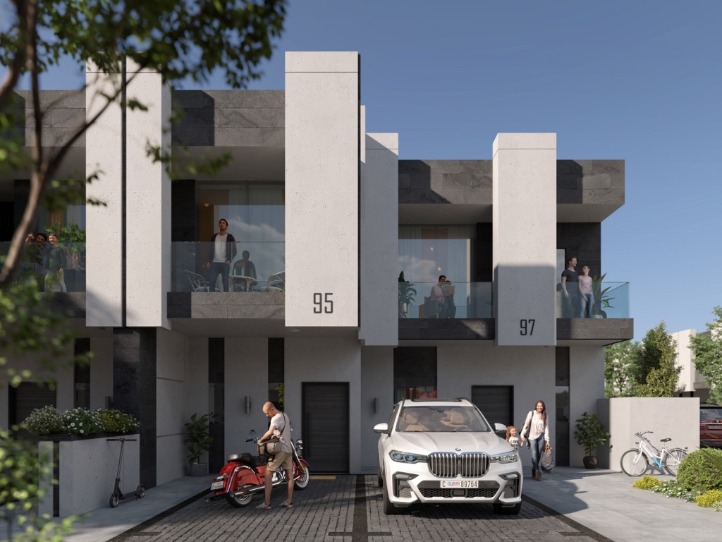 Блестяще спроектированные таунхаусы, где солнечные лучи падают на белоснежные фасады, излучая красоту, а балконы с двойным остеклением позволяют насладиться великолепием пышной зелени.
